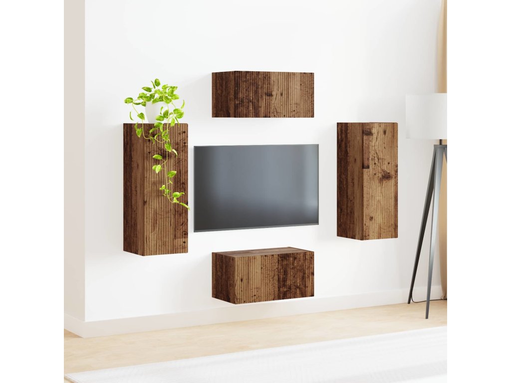 Sestava TV skříněk Nástěnný 2 pcs Staré dřevo kompozitní dřevo [3408977]