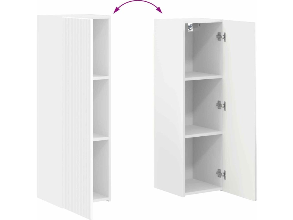Tato moderní sada televizních kabinetů má elegantní a minimalistický design. Skládá se ze tří nástěnných kabinetů, které poskytují dostatek úložného prostoru při zachování štíhlého vzhledu. Odolná konstrukce z inženýrského dřeva dodává hezký vzhled a vytváří příjemnou atmosféru.