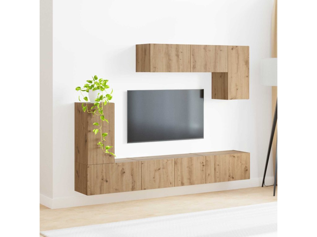 Set TV skříněk je perfektní doplněk do jakéhokoliv moderního obýváku, má elegantní design a minimalistický vzhled. Obdélníková forma a inženýrské dřevo dávají současný pocit a dostatek úložného prostoru pro domácí zábavu. Je ideální pro ty, kteří chtějí funkčnost a šmrnc v obytných prostorech. Ať už plánujete filmovou noc, nebo se jen tak díváte na televizi, tento TV kabinet vám pomůže udělat pořádek a vypadá skvěle.
