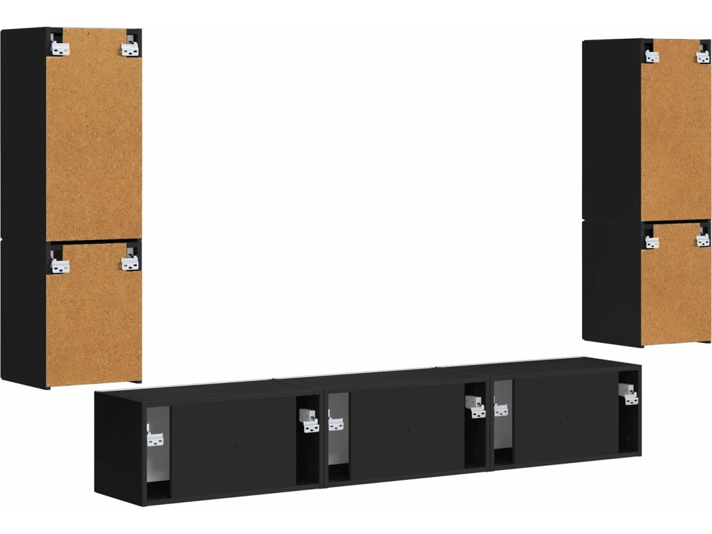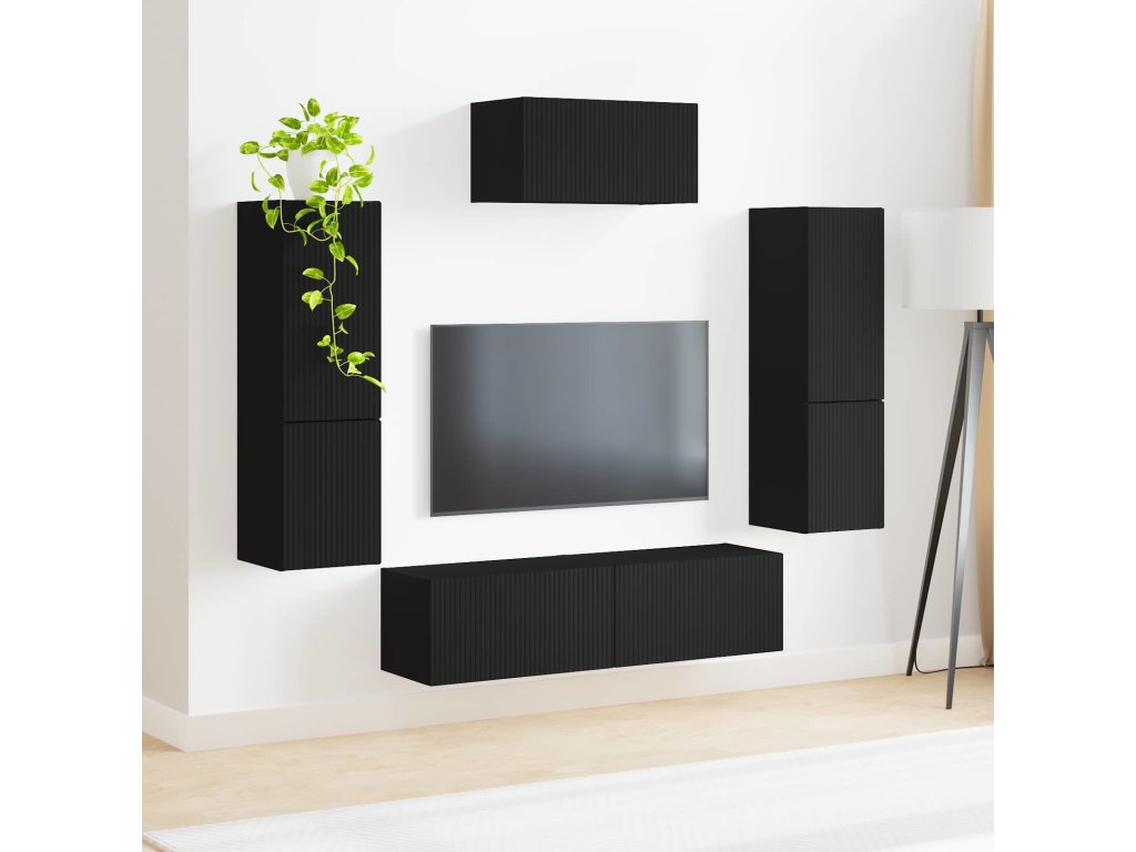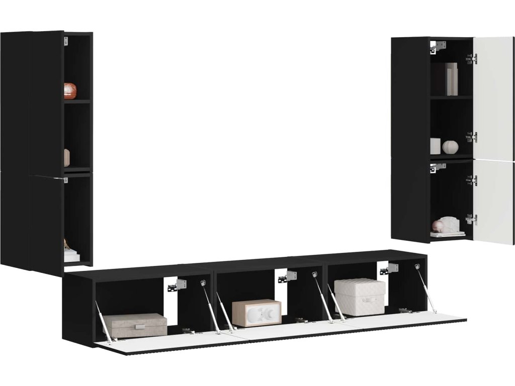 Sestava TV skříněk Nástěnný 4 pcs Černá kompozitní dřevo [3409043]