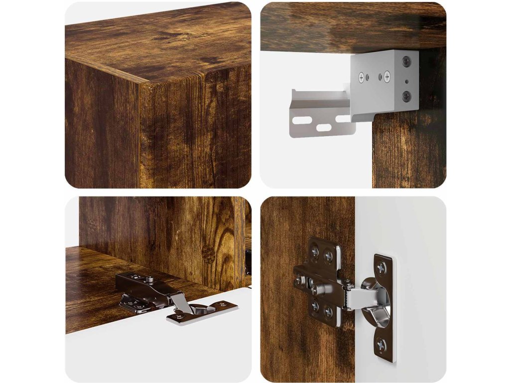 Tato moderní sada televizních kabinetů má elegantní a minimalistický design. Skládá se ze tří nástěnných kabinetů, které poskytují dostatek úložného prostoru při zachování štíhlého vzhledu. Odolná konstrukce z inženýrského dřeva dodává hezký vzhled a vytváří příjemnou atmosféru.