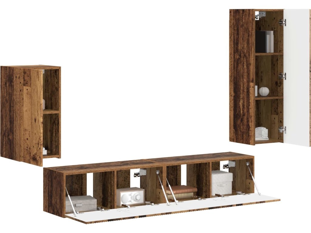 Sestava TV skříněk Nástěnný 4 pcs Staré dřevo kompozitní dřevo [3409013]