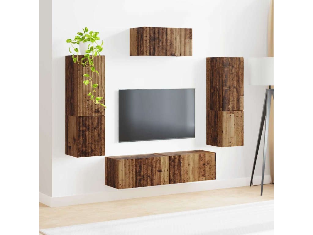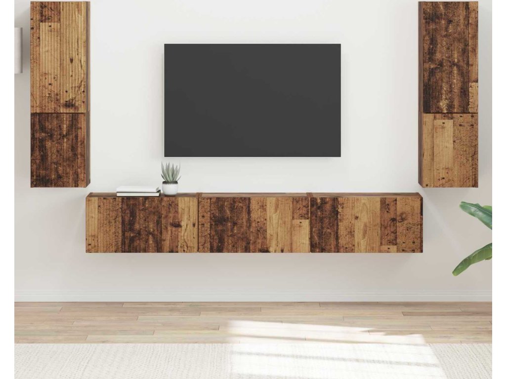 Sestava TV skříněk Nástěnný 4 pcs Staré dřevo kompozitní dřevo [3409049]