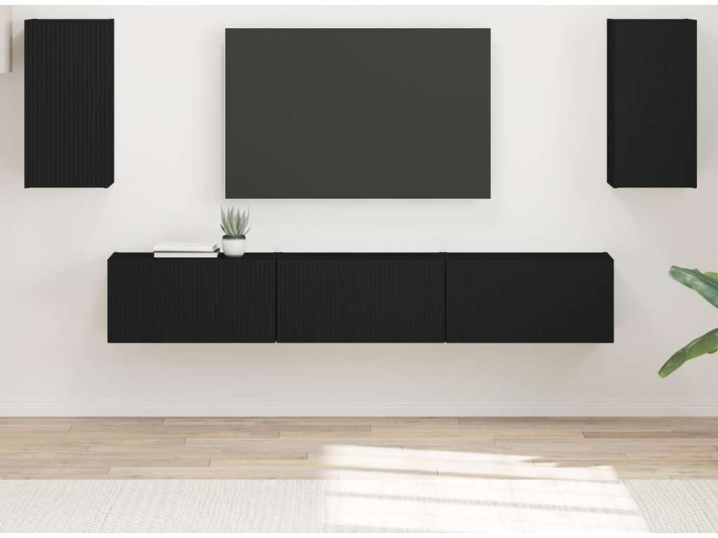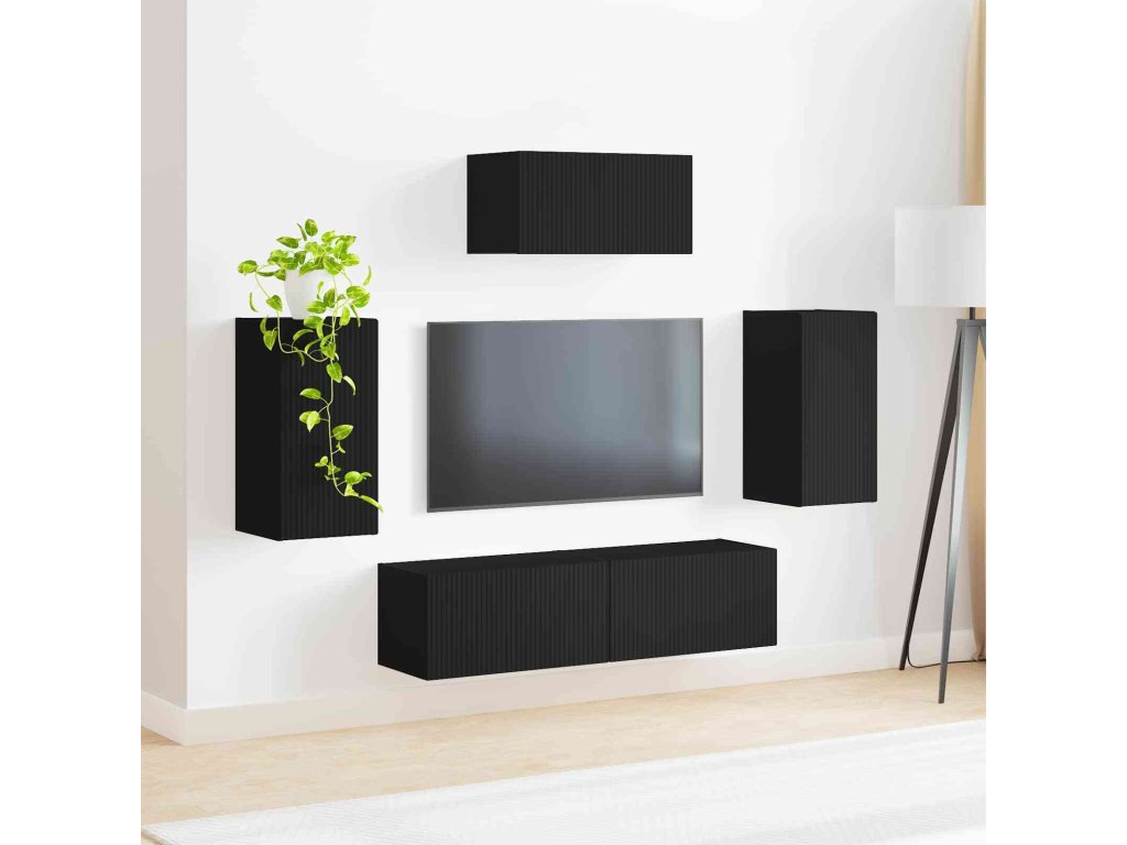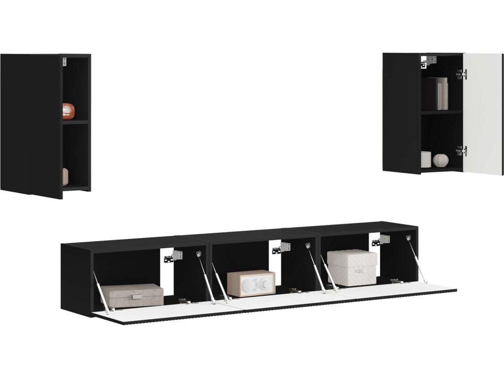 Sestava TV skříněk Nástěnný 5 pcs Černá kompozitní dřevo [3409070]