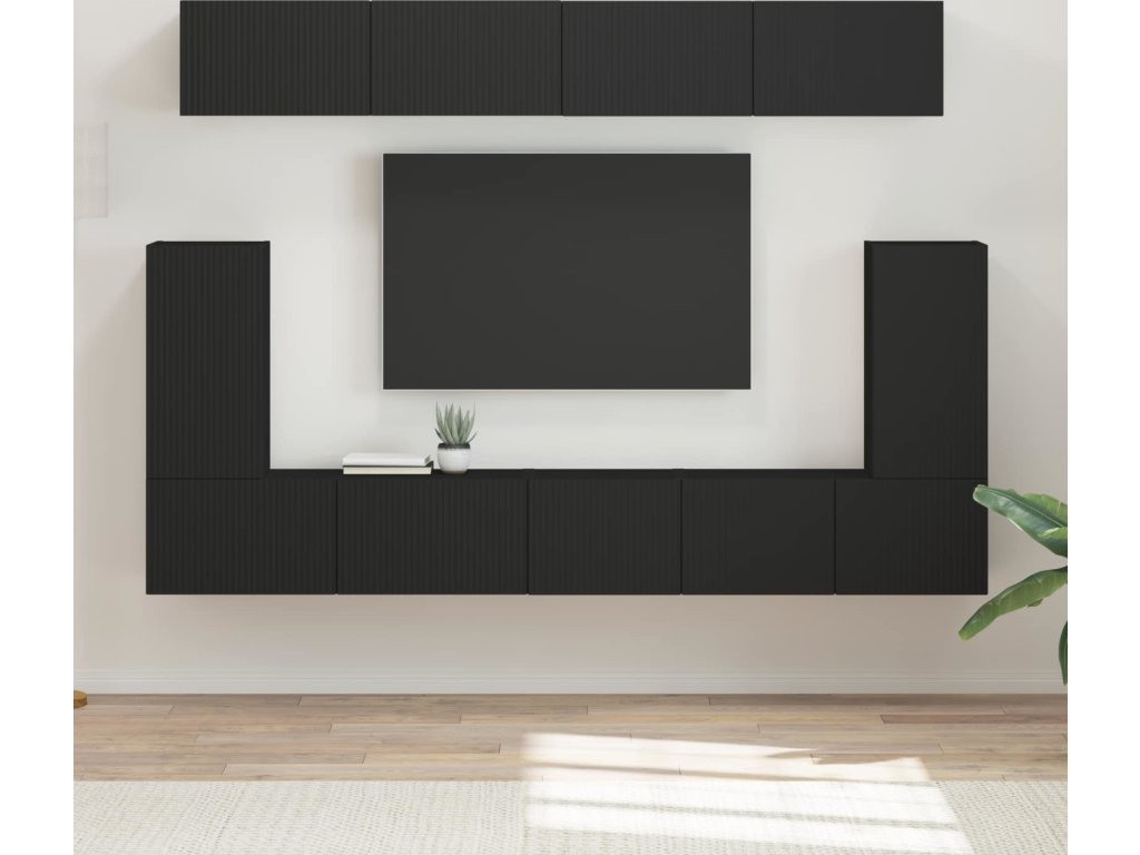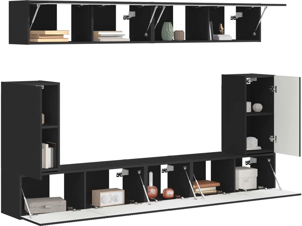 Sestava TV skříněk Nástěnný 5 pcs Černá kompozitní dřevo [3409088]