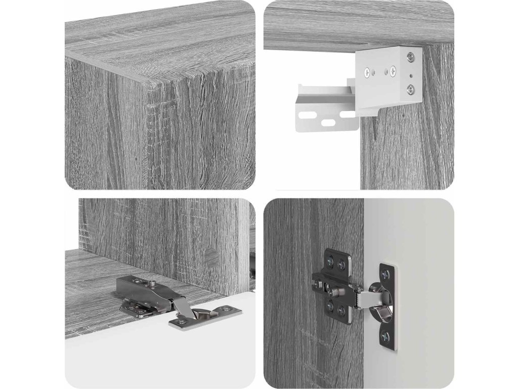 - Inženýrské dřevo na zádech a policích Tyto materiály zajišťují silnou oporu pro vaše věci a ukazují, že skříňka je spolehlivá pro každodenní použití.