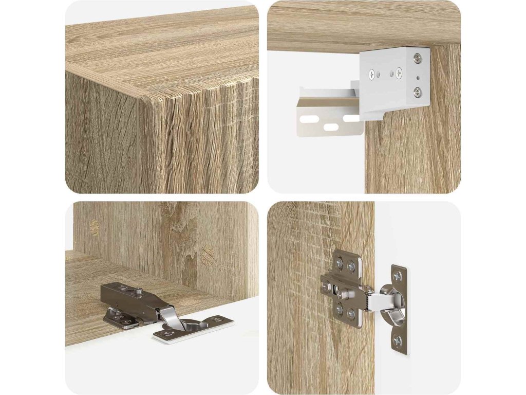 - Moderní design s důrazem na jednoduchost a užitečnost, tento skříňkový set se snadno integruje do moderních interiérů a dodává jim elegantní nádech díky štíhlému a minimalistickému stylu.
