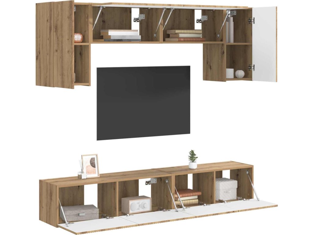 - Úsporné komponenty: Efektivně navržené s možností montáže na zeď, což šetří místo a udržuje váš prostor čistý. Perfektní pro menší prostory, tato televizní skříňka podporuje jednoduchý životní styl.