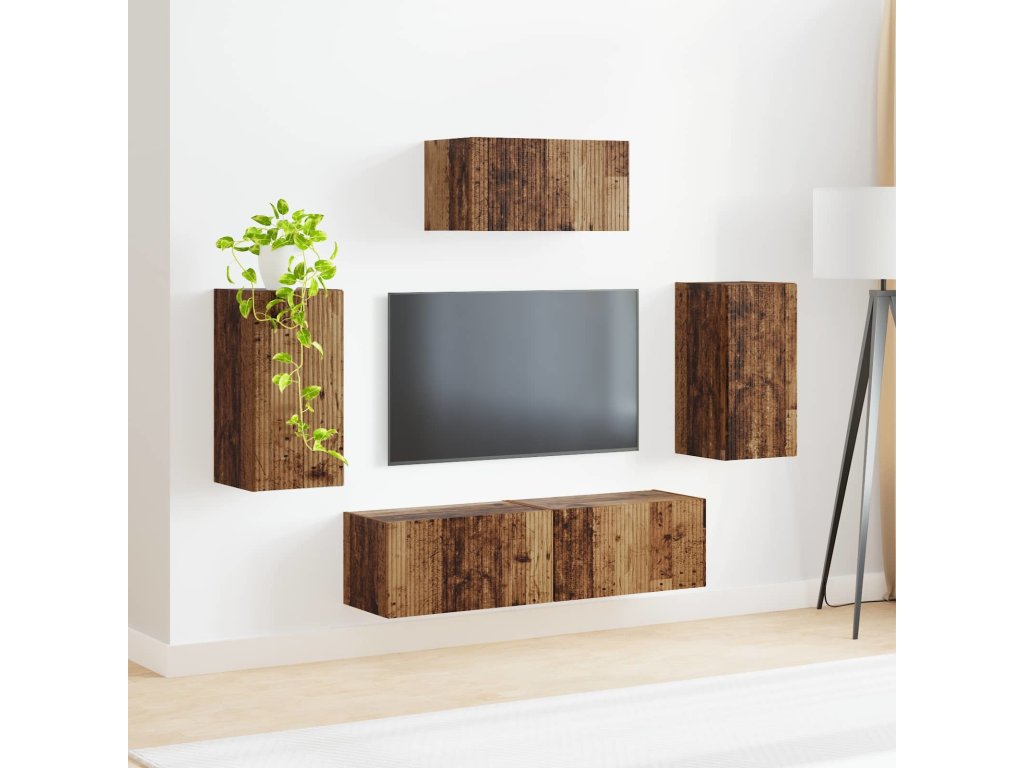 Sestava TV skříněk Nástěnný 5 pcs Staré dřevo kompozitní dřevo [3409076]