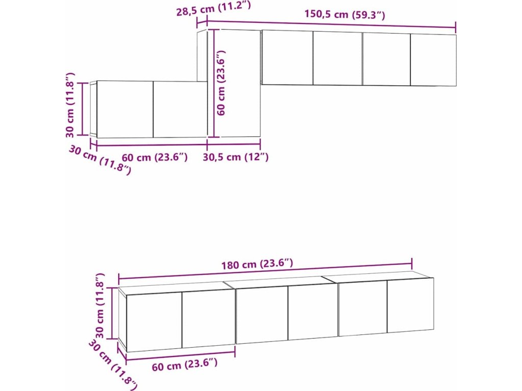 Tato nástěnná skříň pro TV dodá vašemu obýváku moderní šmrnc. Vyrábí se hlavně z inženýrského dřeva a perfektně spojuje praktičnost a hezký vzhled, ideální pro ty, kteří musí využít každý kousek místa bez obětování stylu. Její čisté linie a minimalistický styl činí z ní skvělý kousek pro úschovu médií.