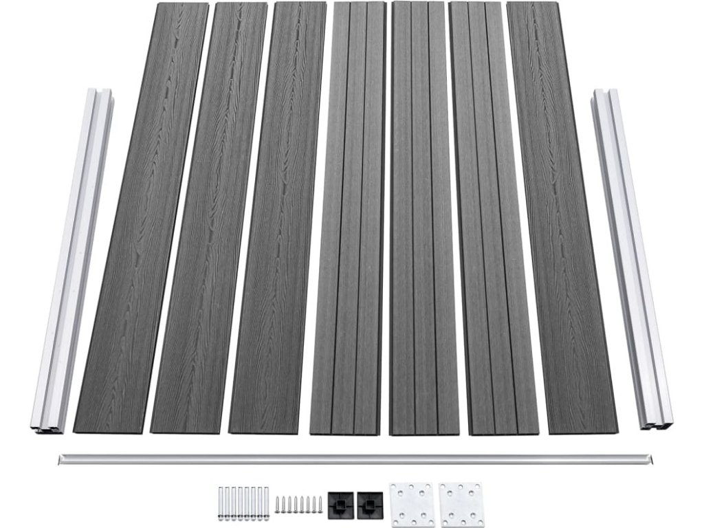 - Materiál: WPC (dřevoplast), hliník, ocel