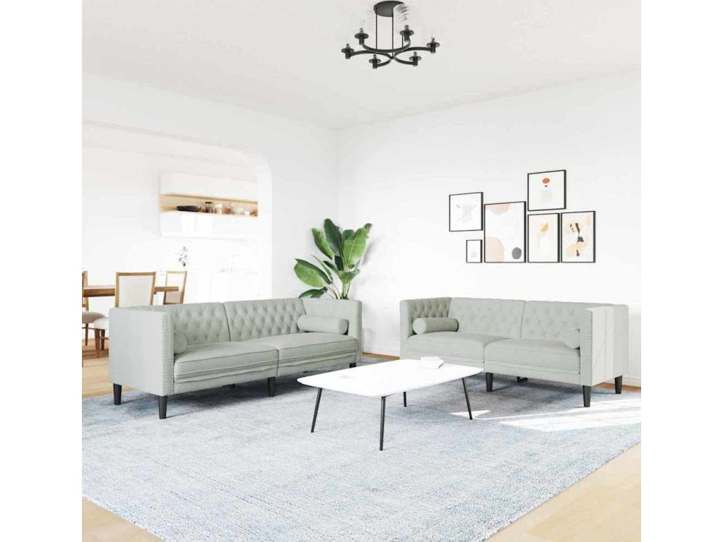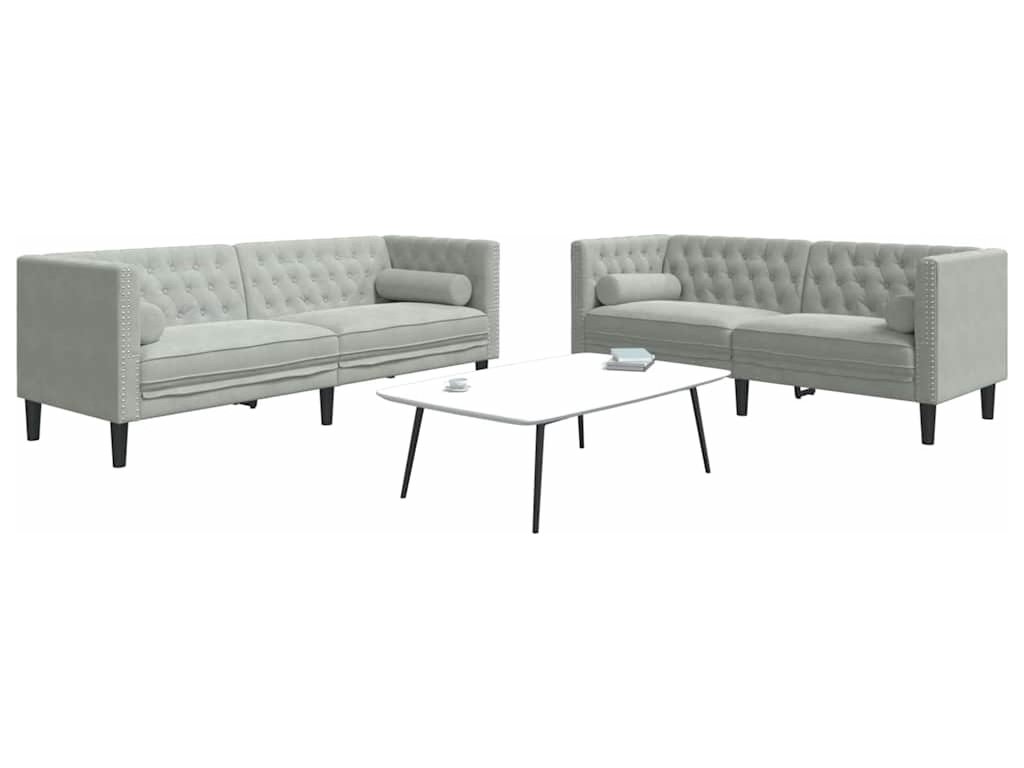 Pohovka do obývacího pokoje 2 pcs Světle šedá samet [3385864]