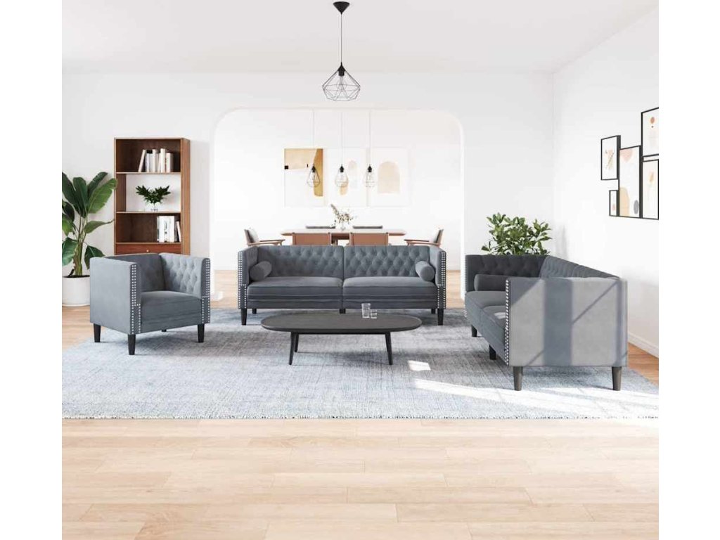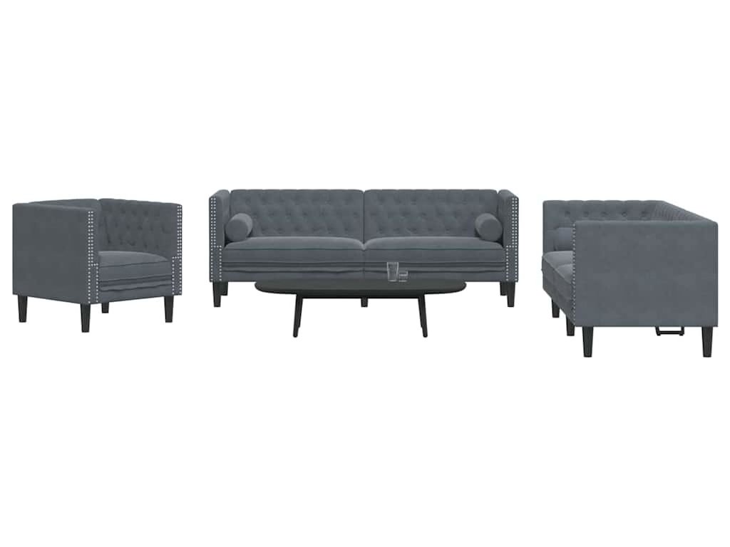 Pohovka do obývacího pokoje 3 pcs Tmavě šedá samet [3385868]