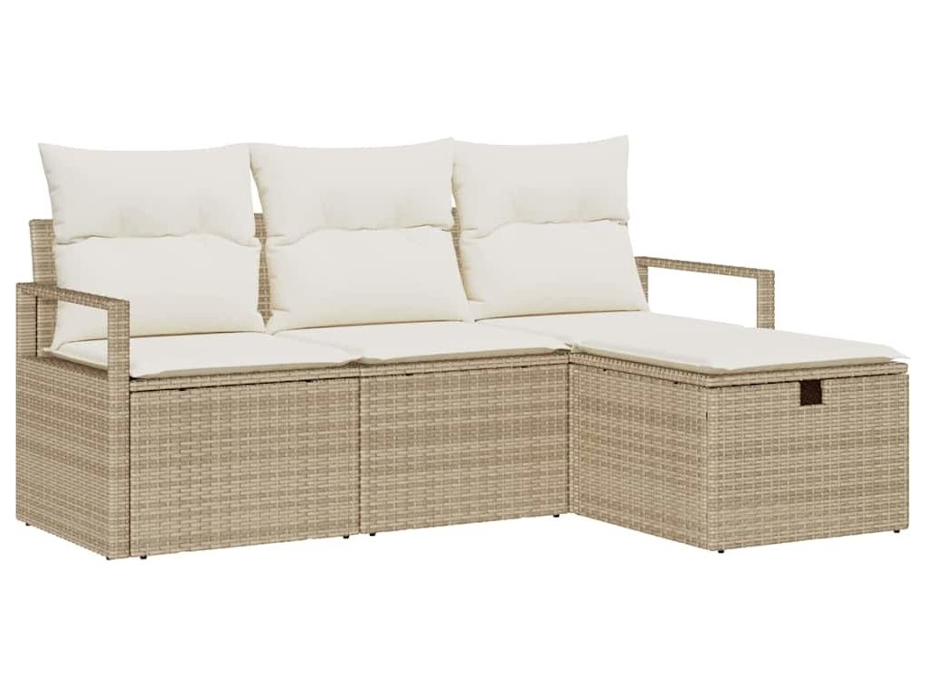 Set pohovek s polštářem 4 pcs Béžová a krémová polyratan [3359150]