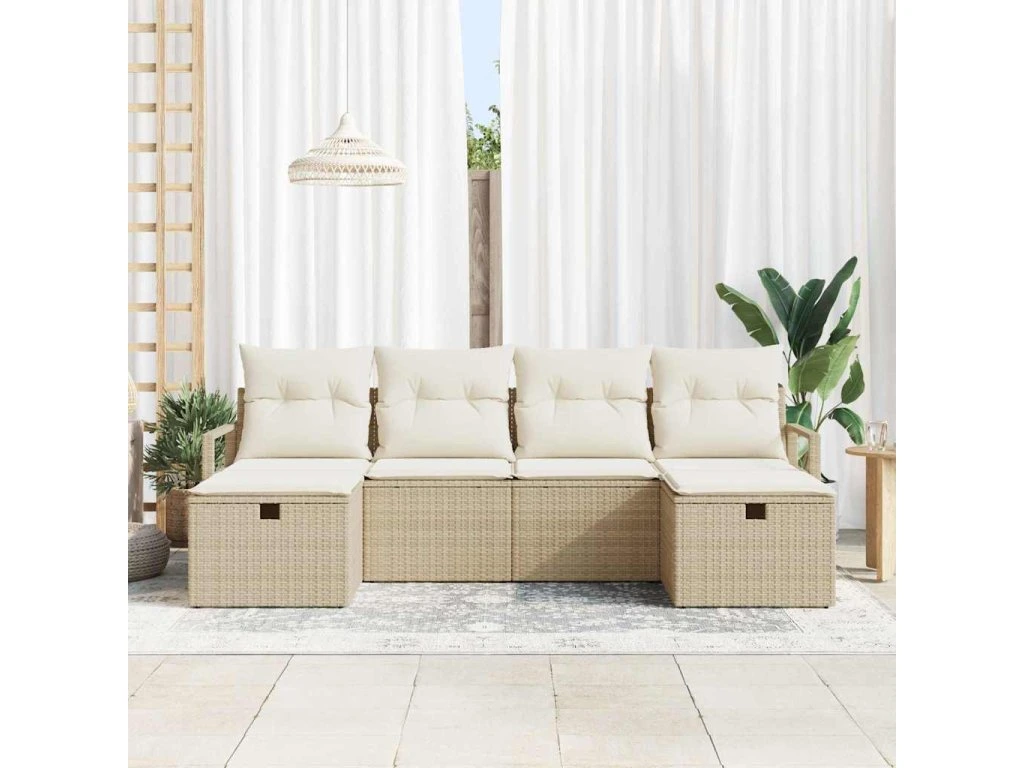 Set pohovek s polštářem 6 pcs Béžová a krémová polyratan [3359220]