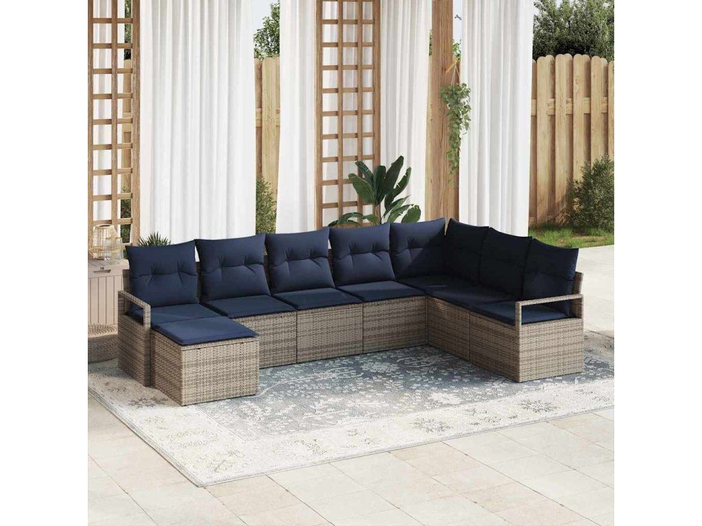 Set pohovek s polštářem 8 pcs Šedá polyratan [3346505]