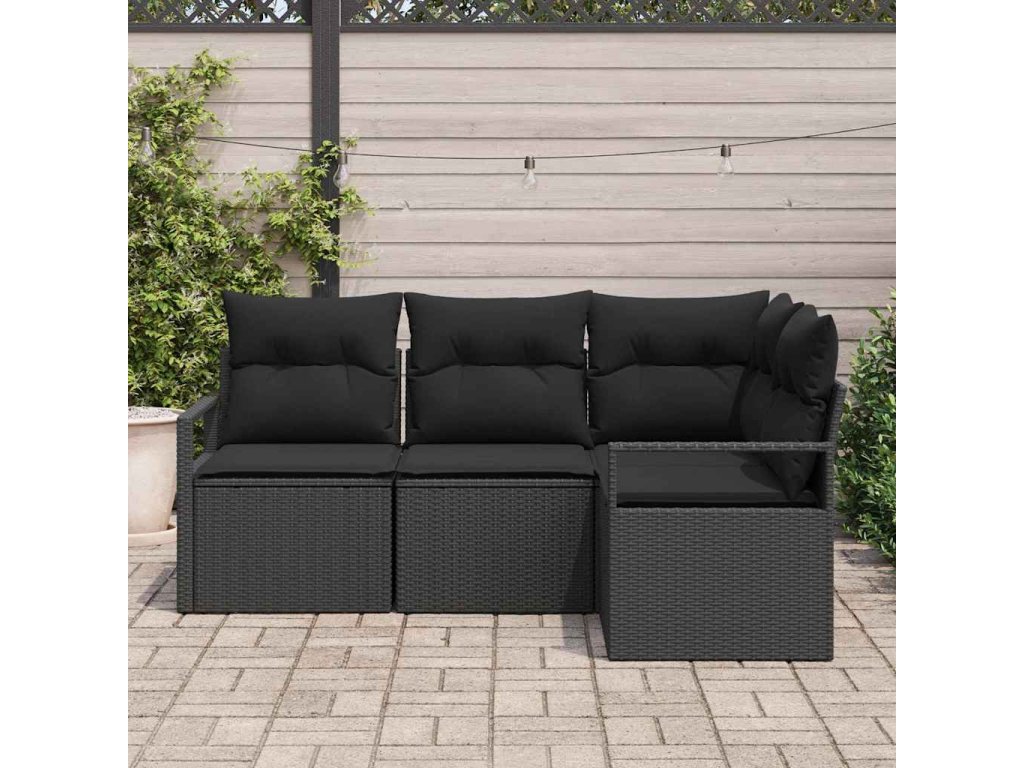 Set pohovek s polštářem s úložištěm 4 pcs Černá polyratan [3355032]