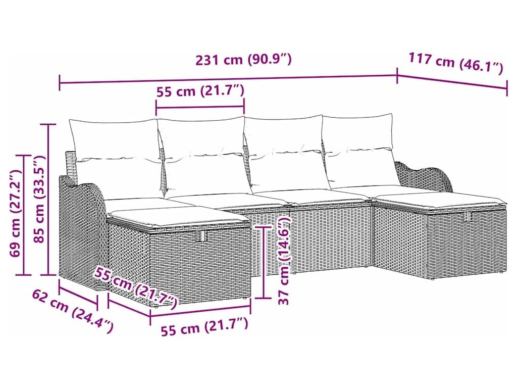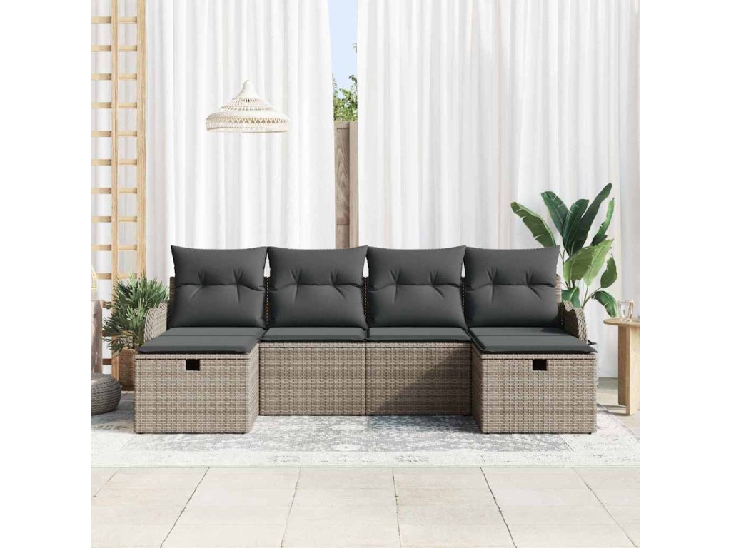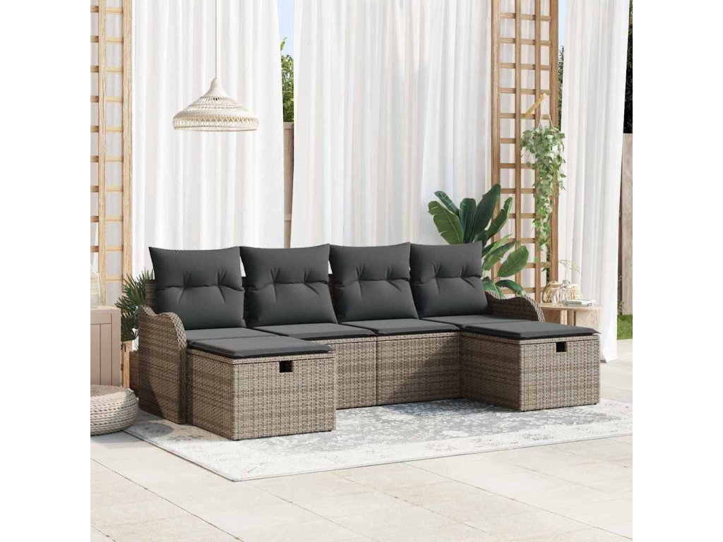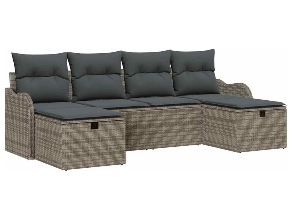 Set pohovek s polštářem s úložištěm 6 pcs Šedá polyratan [3359018]