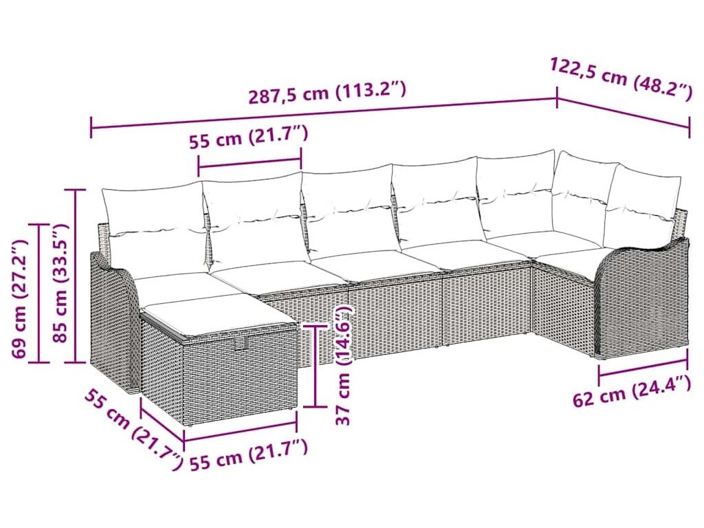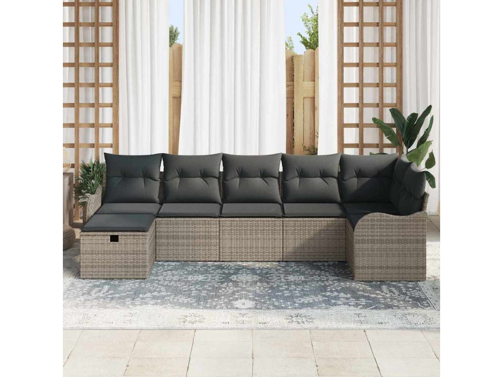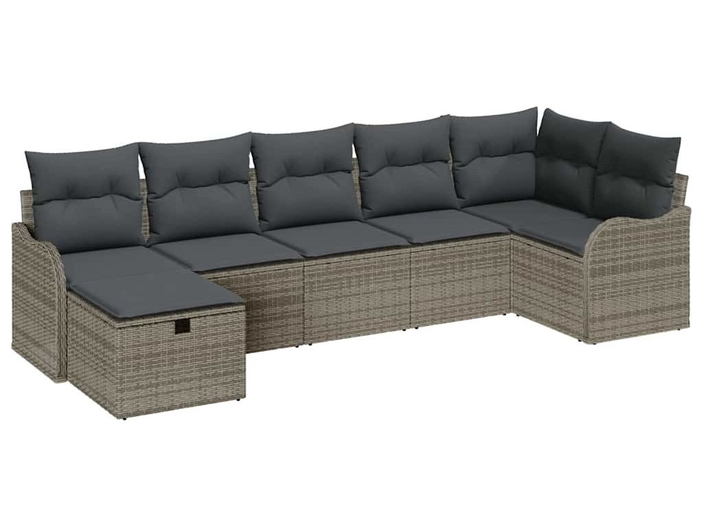 Set pohovek s polštářem s úložištěm 7 pcs Šedá polyratan [3358998]