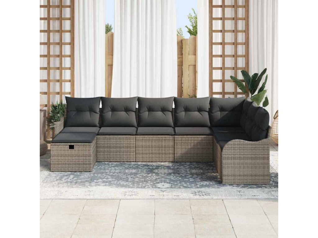 Set pohovek s polštářem s úložištěm 8 pcs Šedá polyratan [3359028]