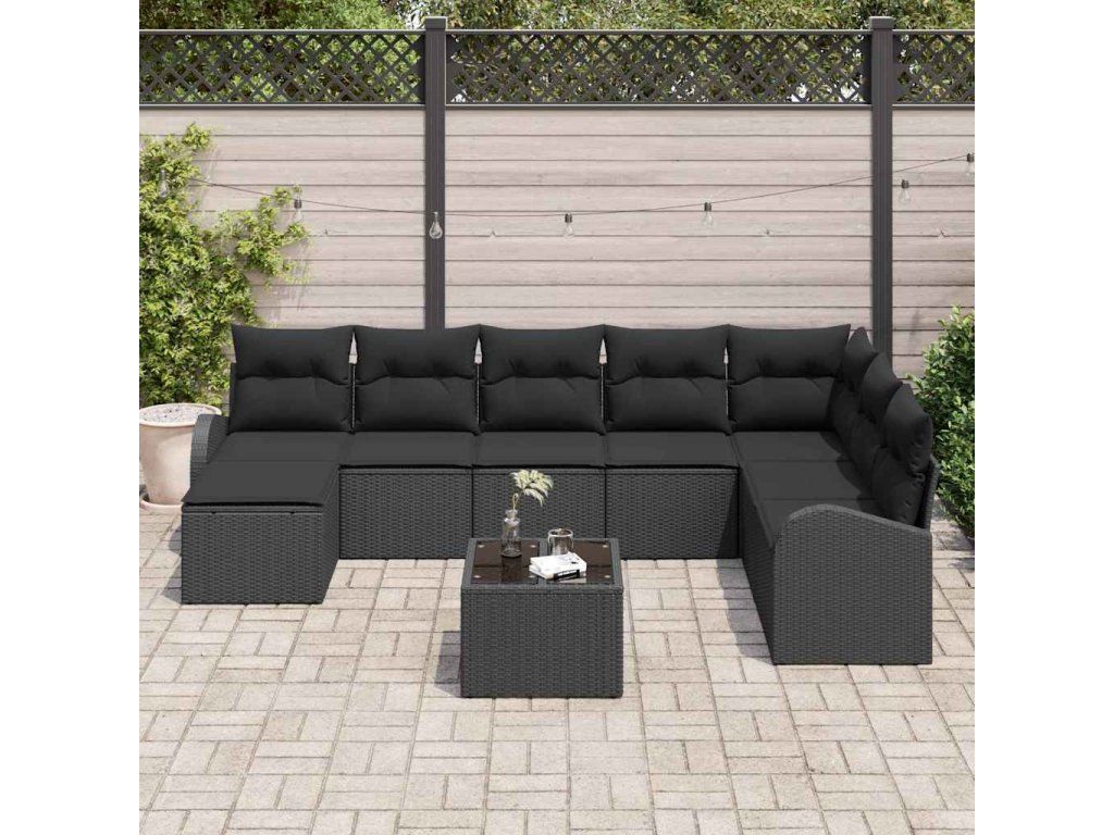 Set pohovek s polštářem s úložištěm 9 pcs Černá polyratan [3354842]