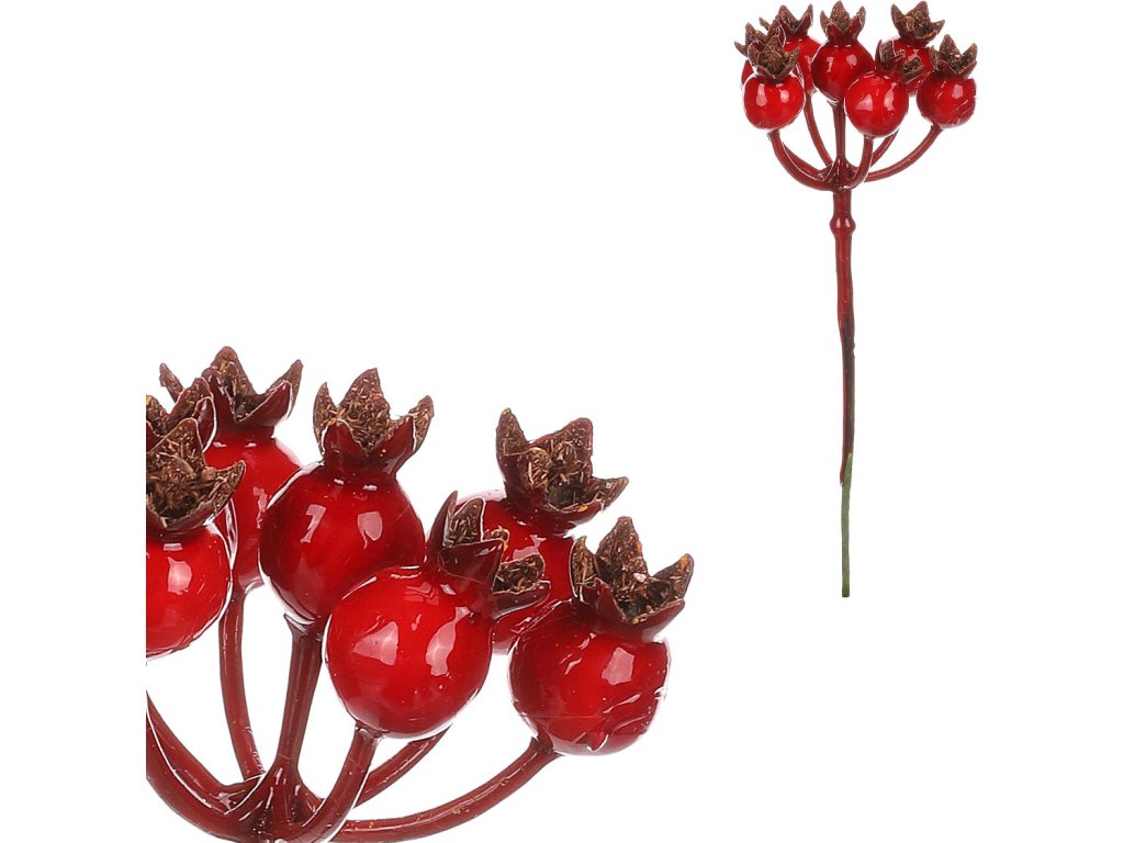 Šípek - umělý trs s plody, zápich, barva červená KU4358 [4358]