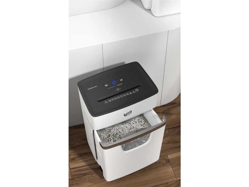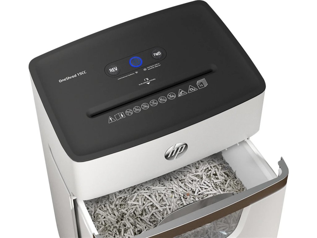 Sháníte spolehlivý skartovač, který si hravě poradí i s kreditními kartami a kancelářskými sponkami? Model OneShred 15CC značky HP skartuje rychlostí 1,8 m/min, je tak ideální do malých kanceláří. Moderní design a bíločerná barva doplní každý interiér.