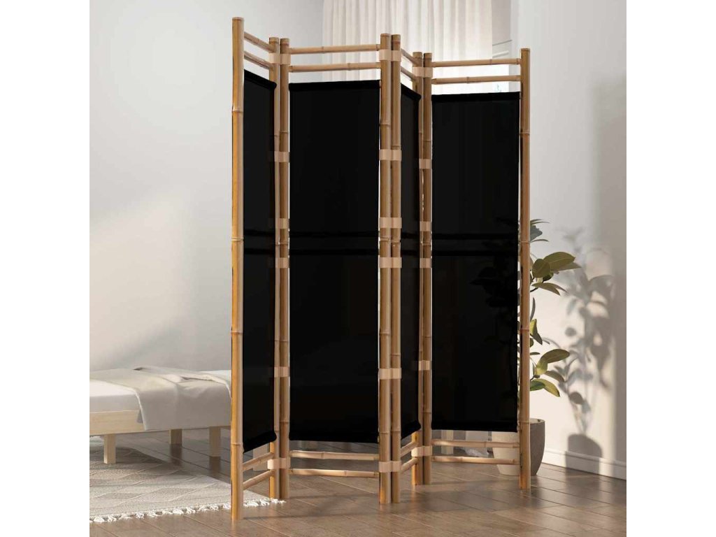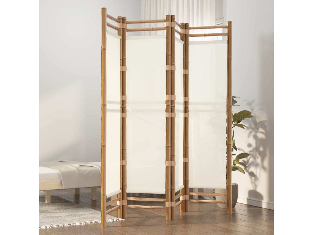 Skládací 4panelový paraván 160 cm bambus a plátno [350628]