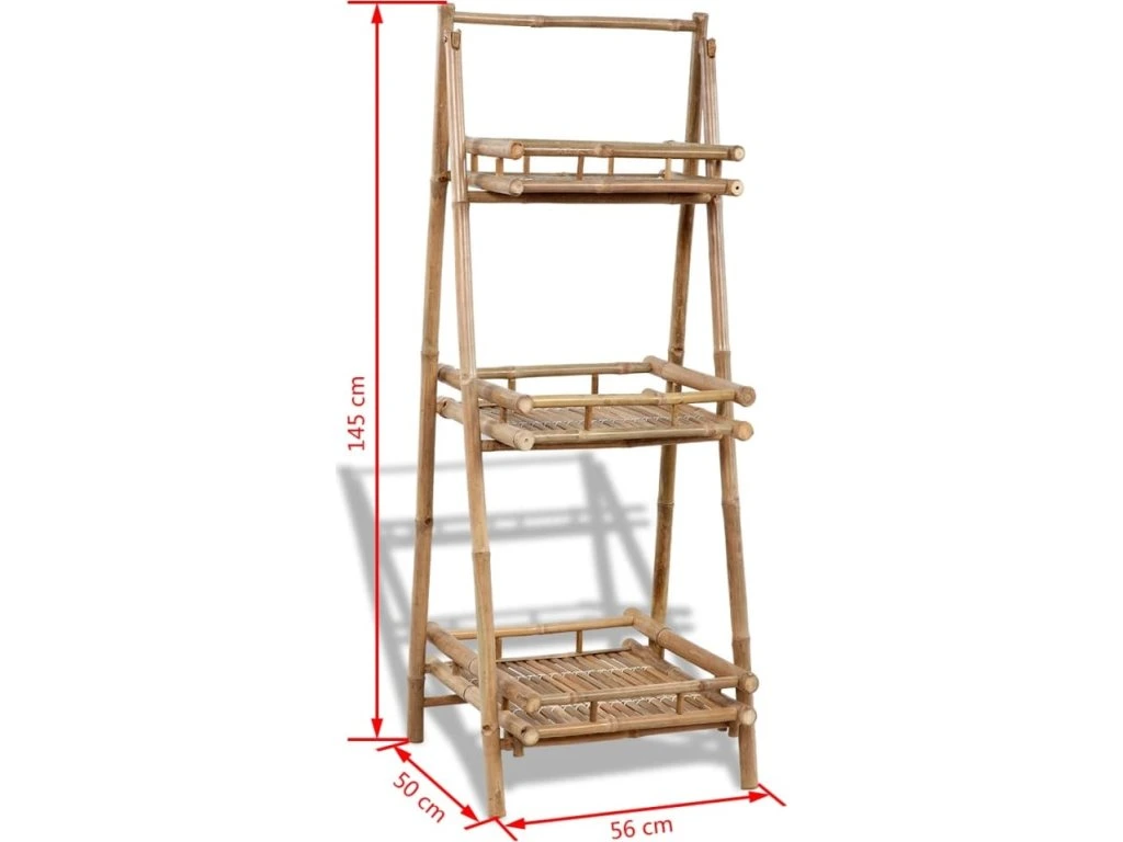 Tento ohromný bambusový regál má jednoduchý, avšak stylový trojúhelníkový tvar. Bude skvělou volbou pro umístění a vystavování květin a dalších předmětů a zaručeně vynikne v každém pokoji, na zahradě či na dvoře.