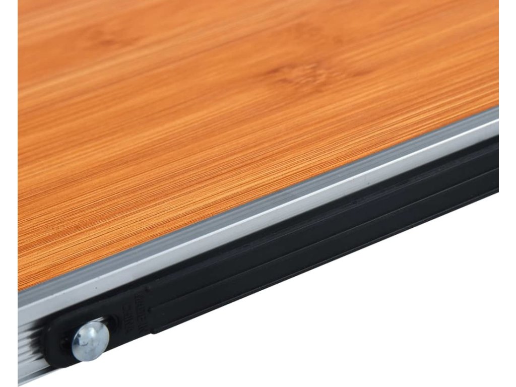 Stůl tvoří rám z lehkého hliníku a deska z MDF, dá se tedy snadno převážet, kam se vám zamane. Jeho rozkládání a čištění vás také nebude stát žádnou zvláštní námahu. Robustní rám a deska zajišťují jeho odolnost a dlouhou životnost. Skládací design umožňuje jednoduché převážení kempingového stolu a rychlé uskladnění, když ho právě nepoužíváte. Rukojeť pro přenášení navíc přispívá k ještě pohodlnějšímu nošení.