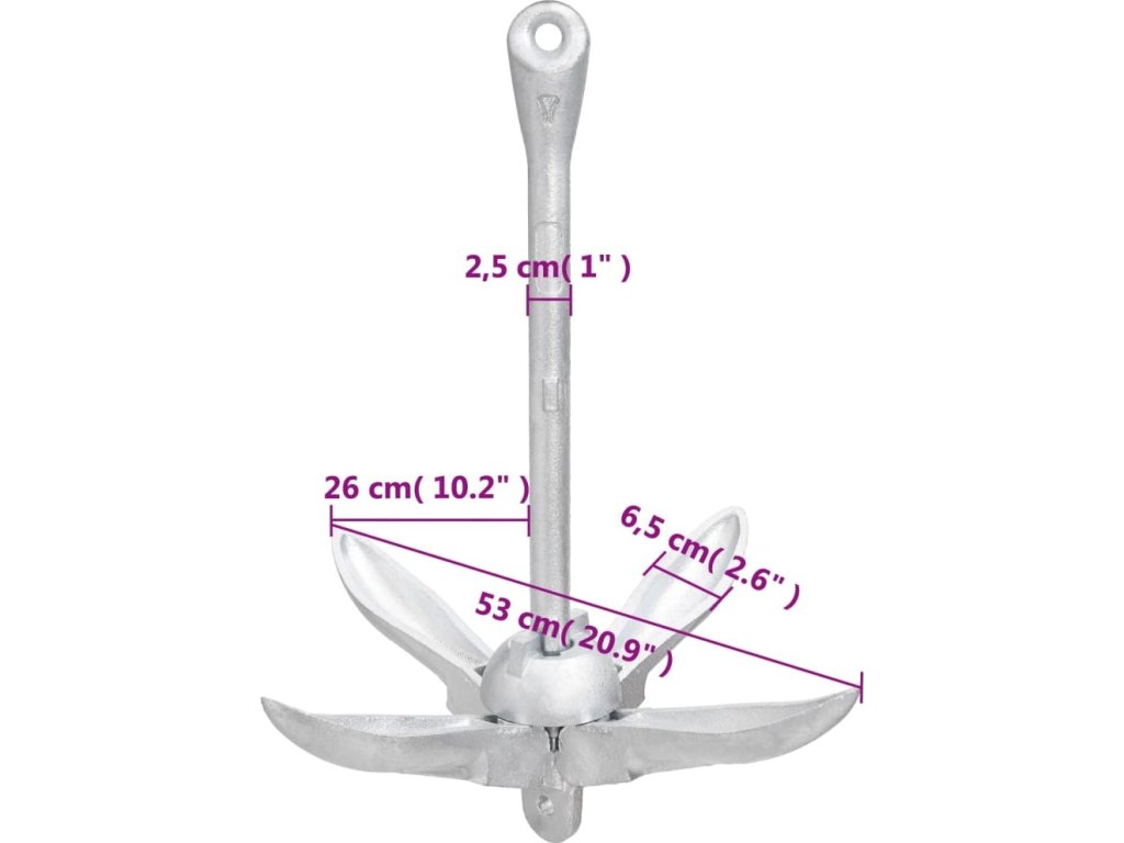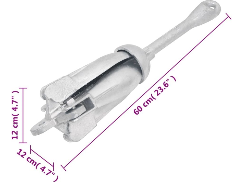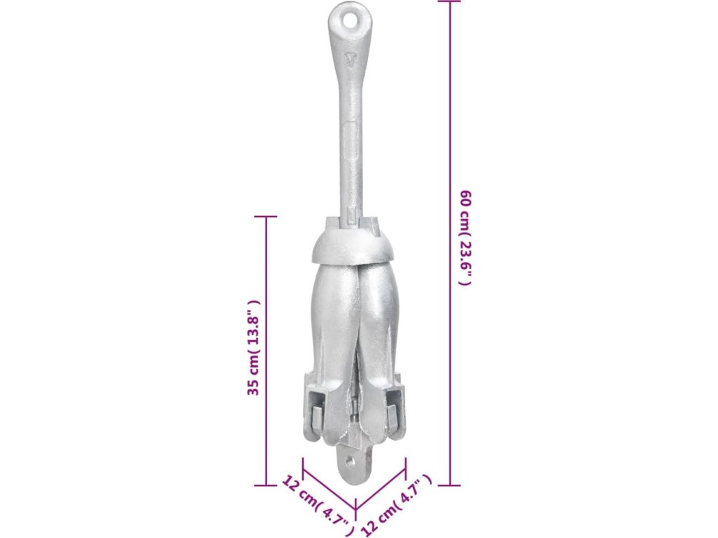 - Široké použití: Kotva je vhodná pro různé menší lodě, jako jsou plachetnice, čluny, rybářské loďky, kajaky, kánoe a paddleboardy.