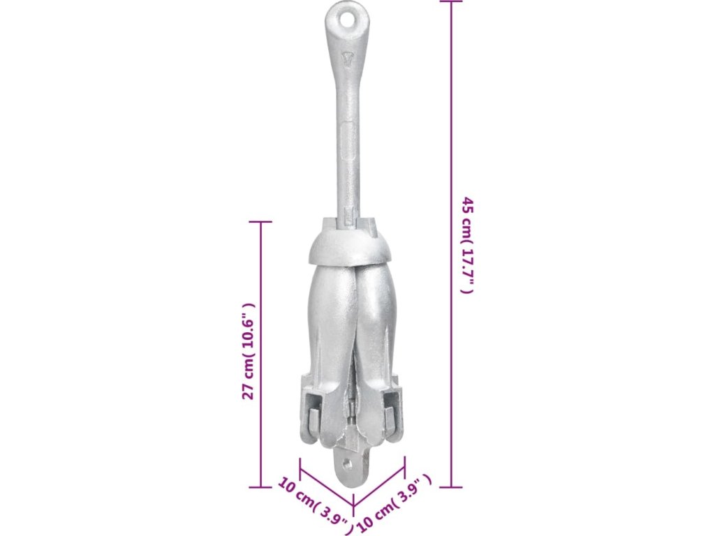- Široké použití: Kotva je vhodná pro různé menší lodě, jako jsou plachetnice, čluny, rybářské loďky, kajaky, kánoe a paddleboardy.