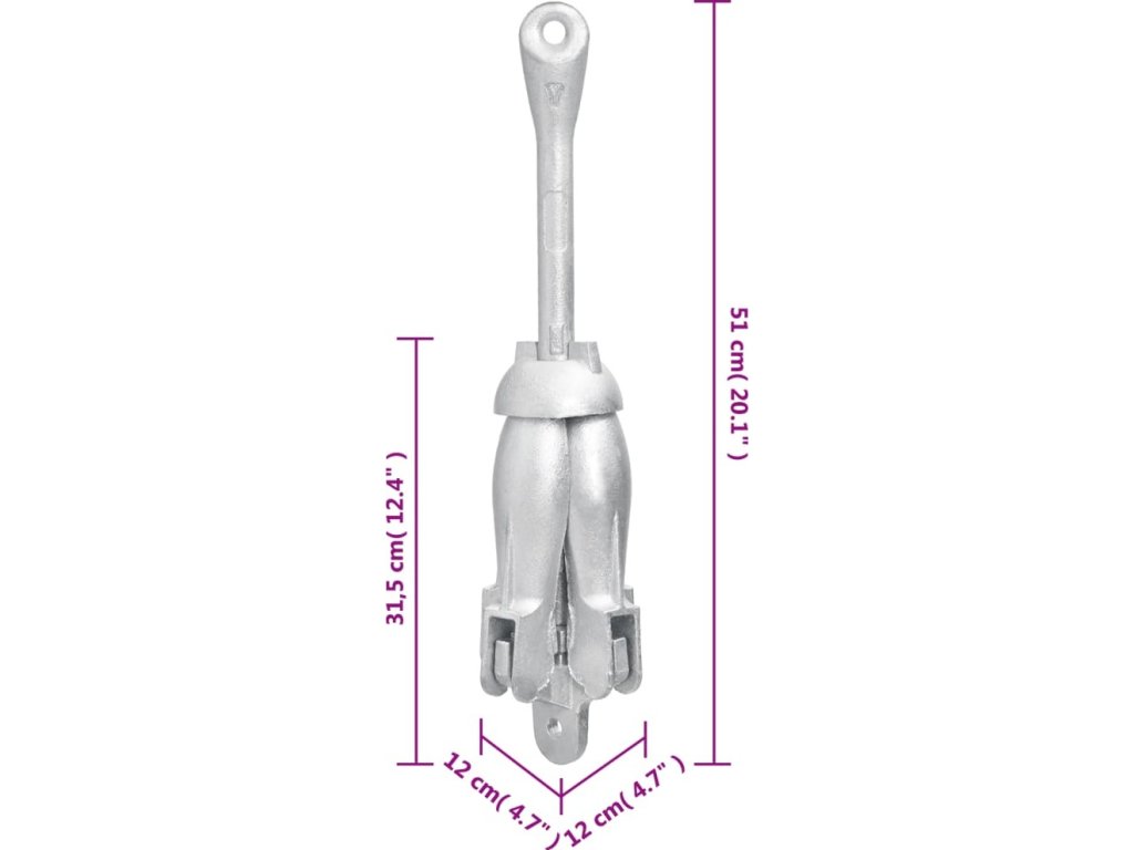 - Široké použití: Kotva je vhodná pro různé menší lodě, jako jsou plachetnice, čluny, rybářské loďky, kajaky, kánoe a paddleboardy.
