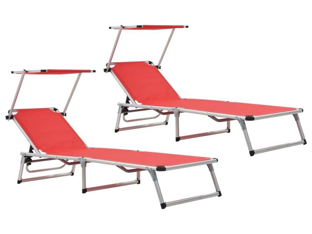Skládací lehátka se stříškou 2 ks hliník textilen červená [312459]