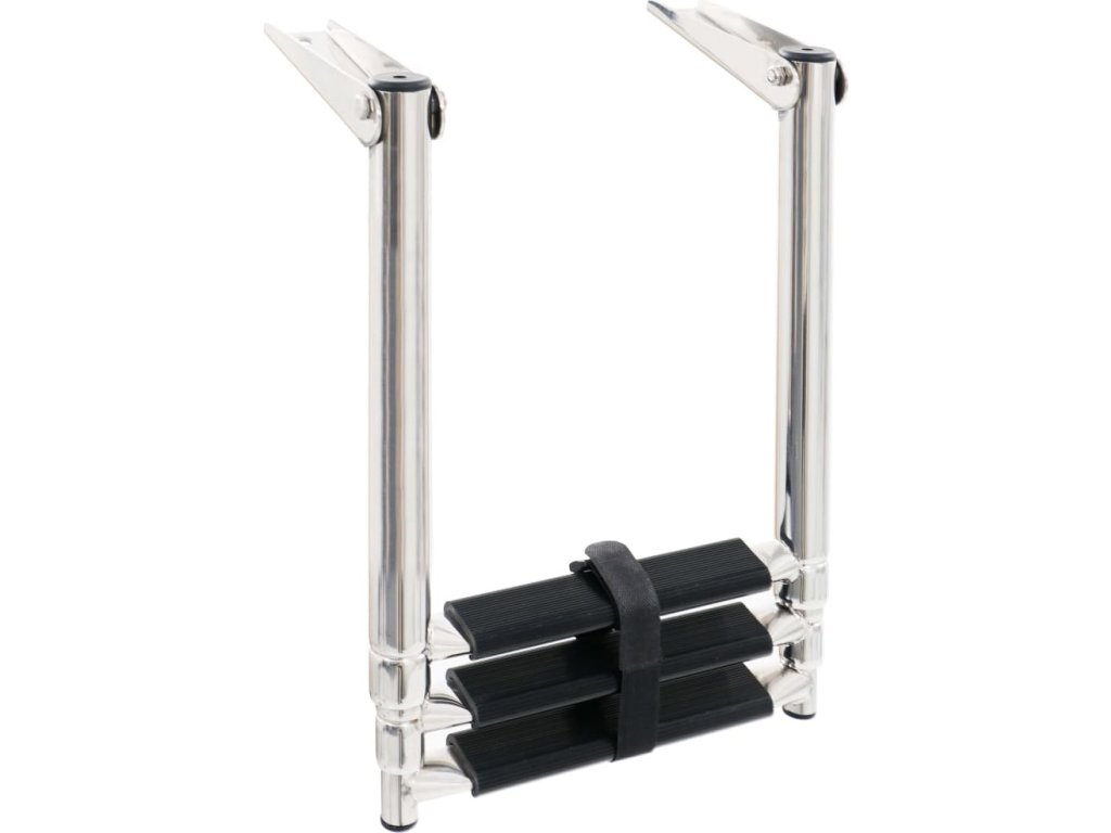 Unikátní teleskopický design umožňuje snadné a rychlé rozložení žebříku pro bezpečně nalodění. Každý schůdek je pro maximální bezpečí opatřený protiskluzovým dezénem. Nástupní žebřík ze silné nerezové oceli nabízí dlouhodobou životnost a unese až 200 kg. Pokud schůdky právě nepoužíváte, můžete je upevnit popruhem. Montážní příslušenství je součástí balení.