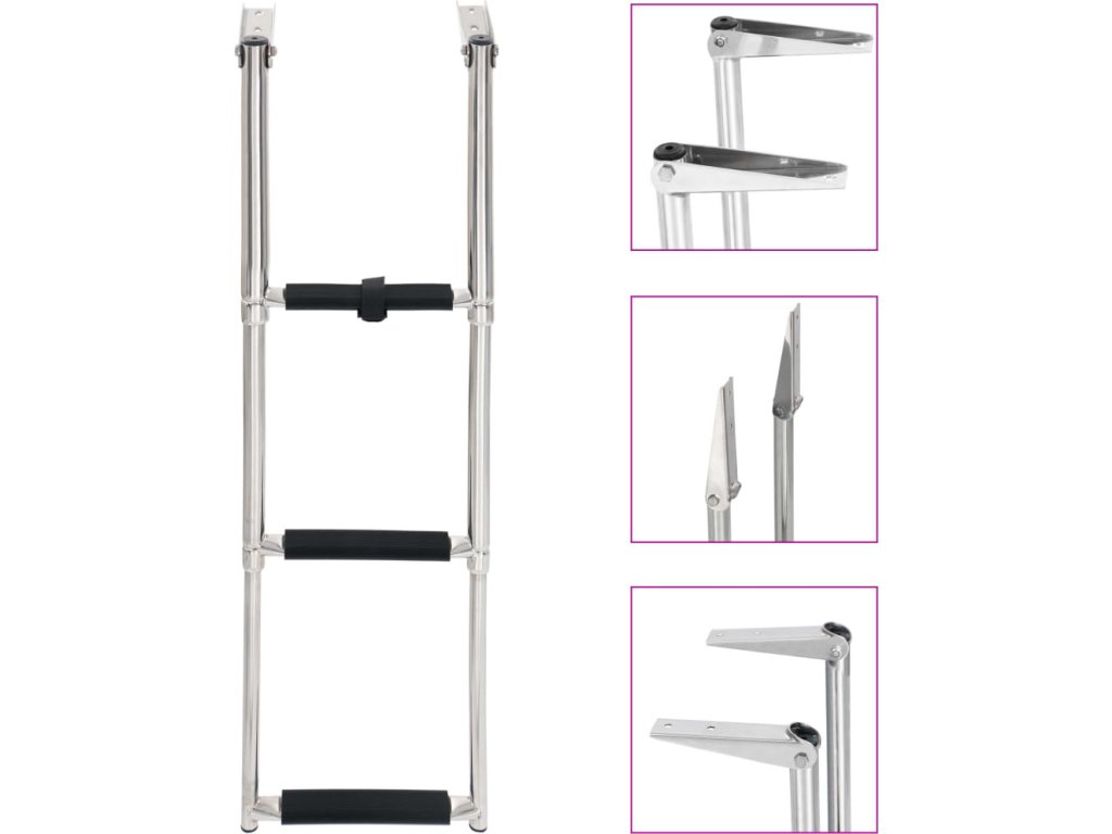 Tento nerezový skládací žebřík s teleskopickým designem je nezbytným příslušenstvím k vašemu bazénu, lodi nebo jiným vyvýšeným plošinám.