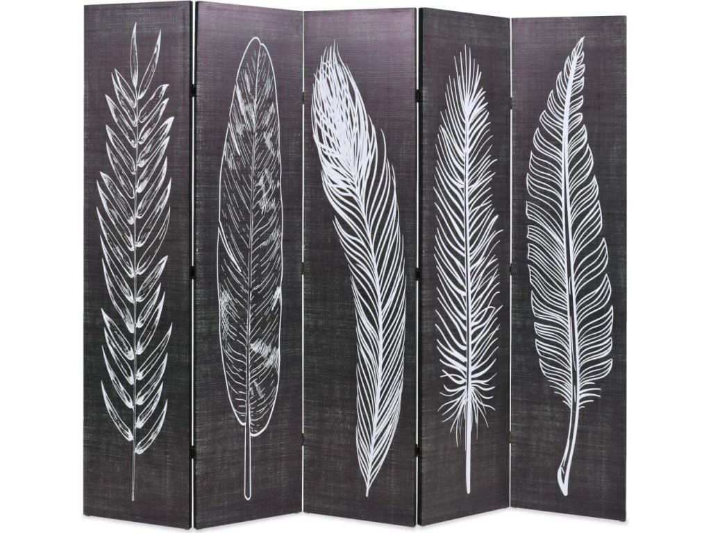 Paraván má masivní dřevěný rám a je pokryt odolným plátnem, který má na obou stranách sofistikovaný potisk na motiv pírek. Do vašeho pokoje vnese zajímavý styl a dekor. Paraván lze také snadno složit pro úsporné skladování, když ho právě nepoužíváte.