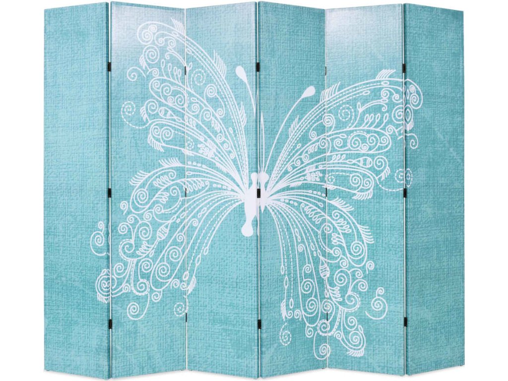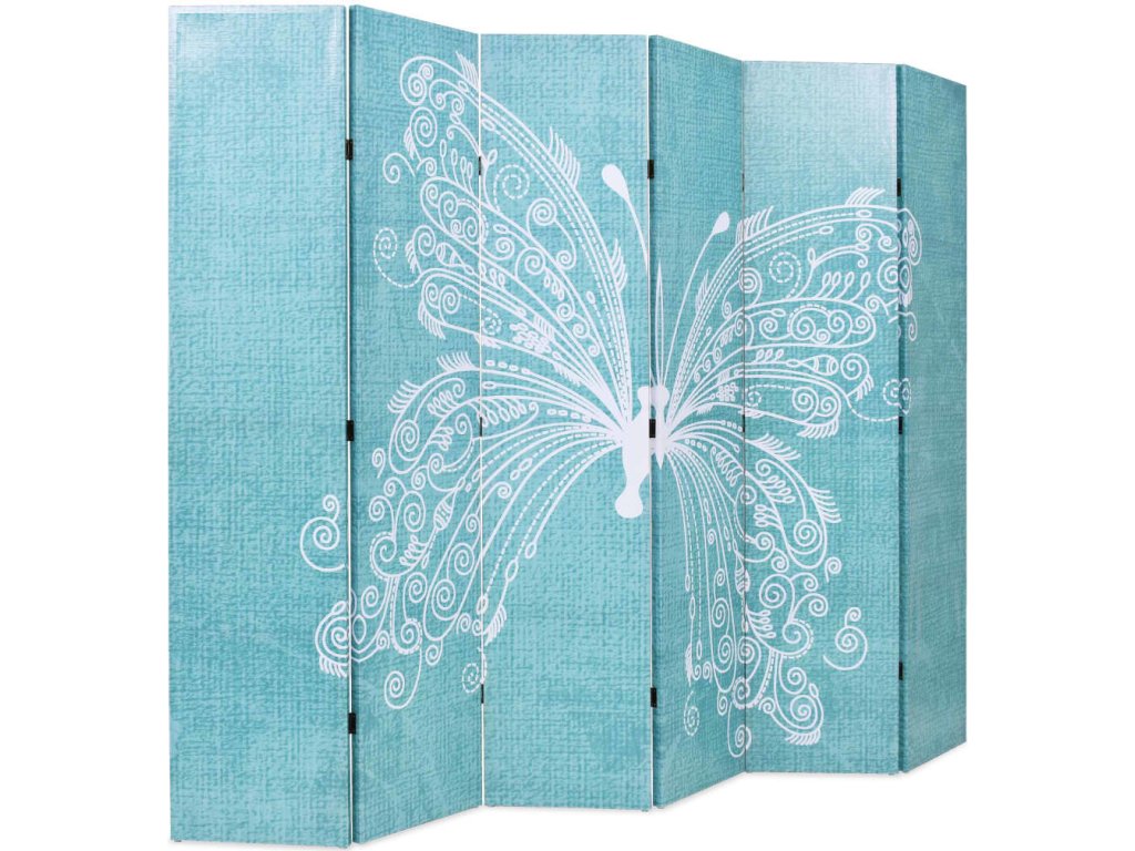 Skládací paraván 228 x 170 cm motýl modrý [245888]