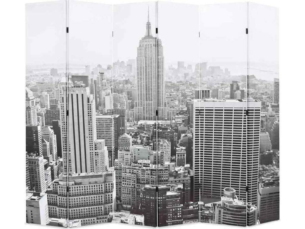Tato dělící stěna má masivní dřevěný rám a je potažená odolným plátnem, na kterém je velkolepá fotografie v černobílém provedení vyobrazující pohled na denní New York a krásnou Empire State Building a vašemu interiéru dodá nádech moderního stylu. Tato dělící stěna může být pro úsporu místa také jednoduše složena, když ji právě nepoužíváte.