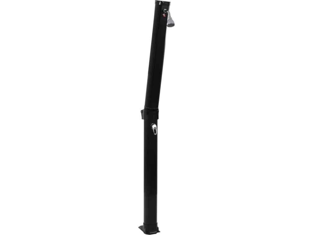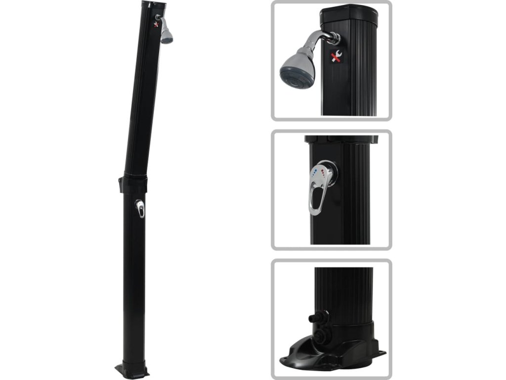 Tato venkovní sprcha je vyrobena z PVC, které je odolné a neobsahuje žádné nebezpečné chemikálie. Černé tělo přispívá k rychlému načerpání solární energie za slunečných dní. Voda se může zahřát až na 62 °C. Zahradní sprcha disponuje praktickou funkcí pro nastavení teploty vody, takže si můžete snadno určit poměr teplé a studené vody. Je též možné ji připojit k jakékoli běžné zahradní hadici aniž by bylo třeba provádět další instalatérské práce. Tato kompaktní sprcha k bazénu je skládací, takže se snadno převáží i skladuje.