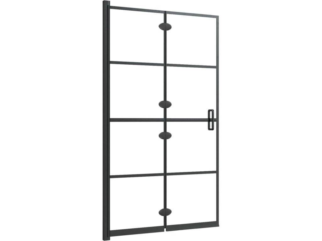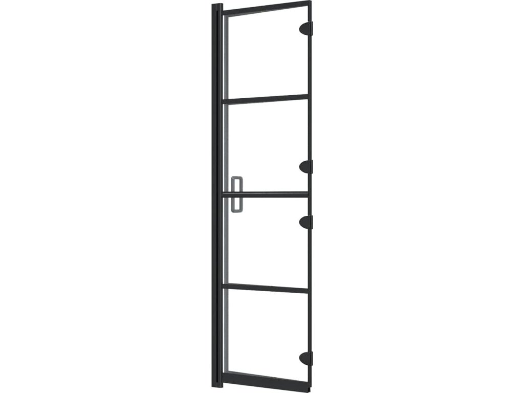 - Materiál: ESG (jednovrstvé bezpečnostní sklo) s černým pruhovým potiskem, hliník