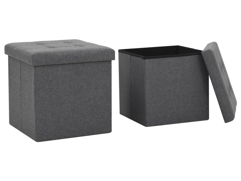Úložné stoličky jsou vyrobeny z MDF a jsou čalouněné umělým lnem, který je odolný, stabilní a pohodlně se na něm sedí. Jeho šedá barva snadno schová skvrny nebo prach. Stoličky jsou vybaveny odnímatelnými sedáky. Poskytnou vám spoustu prostoru pro ukládání hromady nejrůznějších věcí, které si nepřejete mít na očích, ale přesto je chcete mít po ruce. Truhly můžete snadno složit, když je nepoužíváte, čímž ušetříte místo. Stoličky je snadné sestavit.