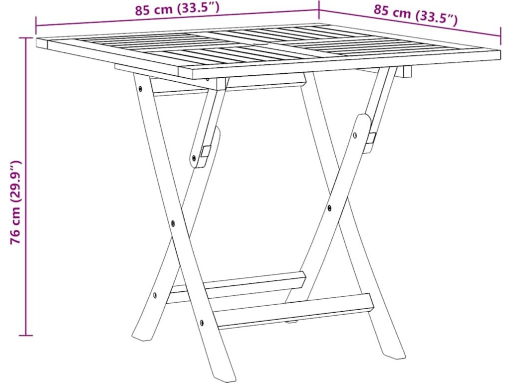 Dřevo také skvěle odolává vlhkosti. Povrch nábytku snadno očistíte vlhkým hadříkem. Stůl lze snadno složit, když se nepoužívá, pro snadné skladování a přepravu. Nábytek je ošetřený lazurou, která dřevu dala krásný teplý odstín. Sestavení tohoto venkovního jídelního stolu je snadné.