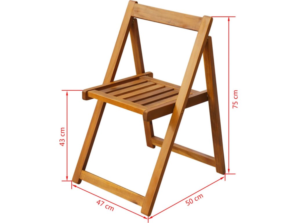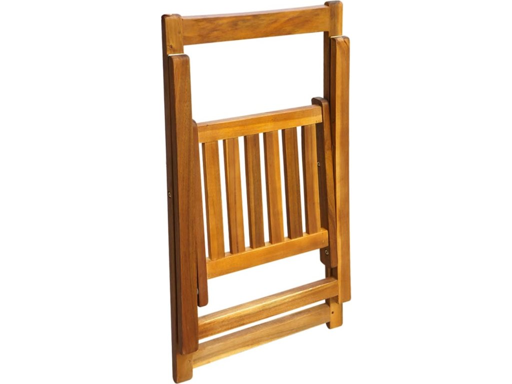 Židle jsou robustní a odolné vůči povětrnostním vlivům, protože jsou vyrobeny ze silného akáciového dřeva s přírodním olejem. Díky dřevěné konstrukci jsou velmi odolné. Tyto skládací židle lze snadno složit, když se nepoužívají, a nezaberou příliš mnoho prostoru.