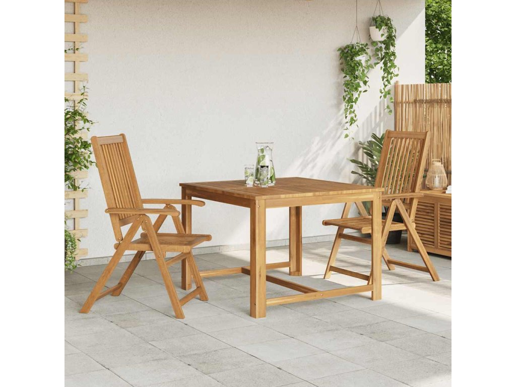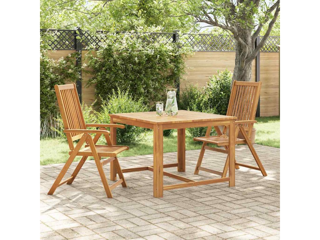 Tento stylový a moderní jídelní set, který se skládá ze 2 skládacích židlí, dodá luxusní nádech každému stolování. Naše souprava dřevěného zahradního nábytku se stane se ústředním prvkem vaší zahrady, dvora nebo terasy.