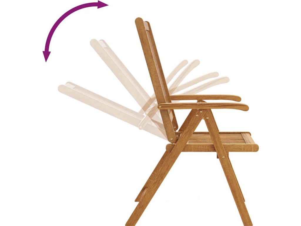 Tento jídelní set je vyroben z vysoce kvalitního akáciového dřeva, tropického tvrdého dřeva, které je odolné vůči povětrnostním vlivům a velmi trvanlivé. Díky olejem natřenému povrchu je snadné ho čistit vlhkým hadříkem. Židle se dá polohovat do 5 pozic, takže vám poskytne optimální pohodlí při sezení. Židle se dají složit, abyste ušetřili místo, když je zrovna nepoužíváte.