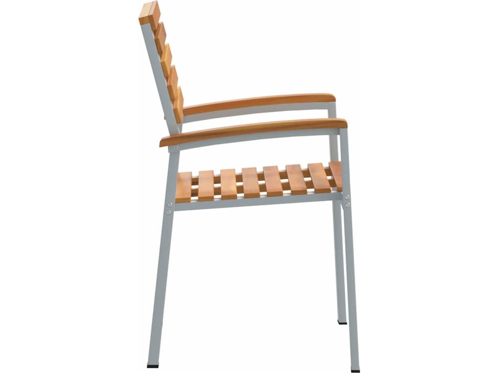 - Součásti: Křeslo má pohodlné opěrky vyrobené z kvalitního akáciového dřeva, což znamená jednotný design. Ocelové nohy poskytují pevnou oporu, i na nerovném povrchu.
