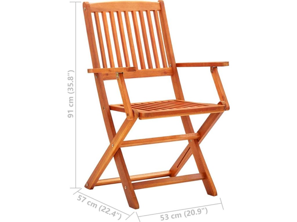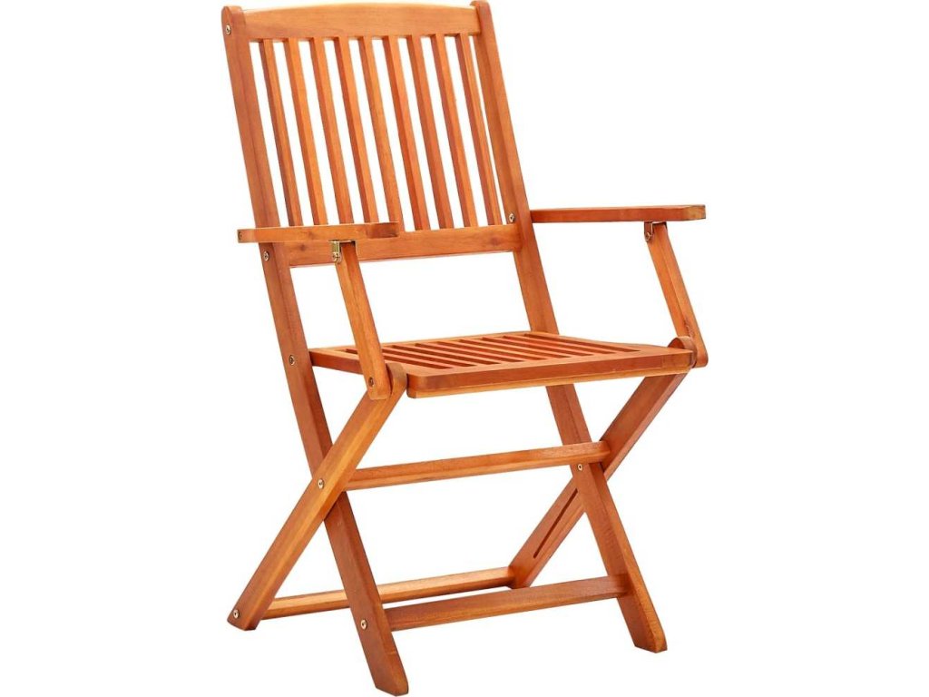 Jídelní židle jsou vyrobeny z eukalyptového dřeva, které je známé svou odolností vůči opotřebení a rozmarům počasí. Olejem ošetřený povrch snadno očistíte vlhkým hadříkem. Pokud židle právě nepoužíváte, můžete je složit, aby vám zbytečně nepřekážely.