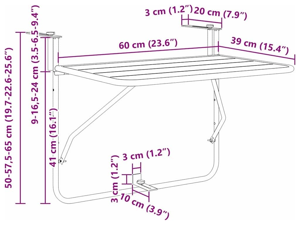 Závěsný balkonový stůl Zelená 60 x 39 x 65 cm Ocel [42008077]