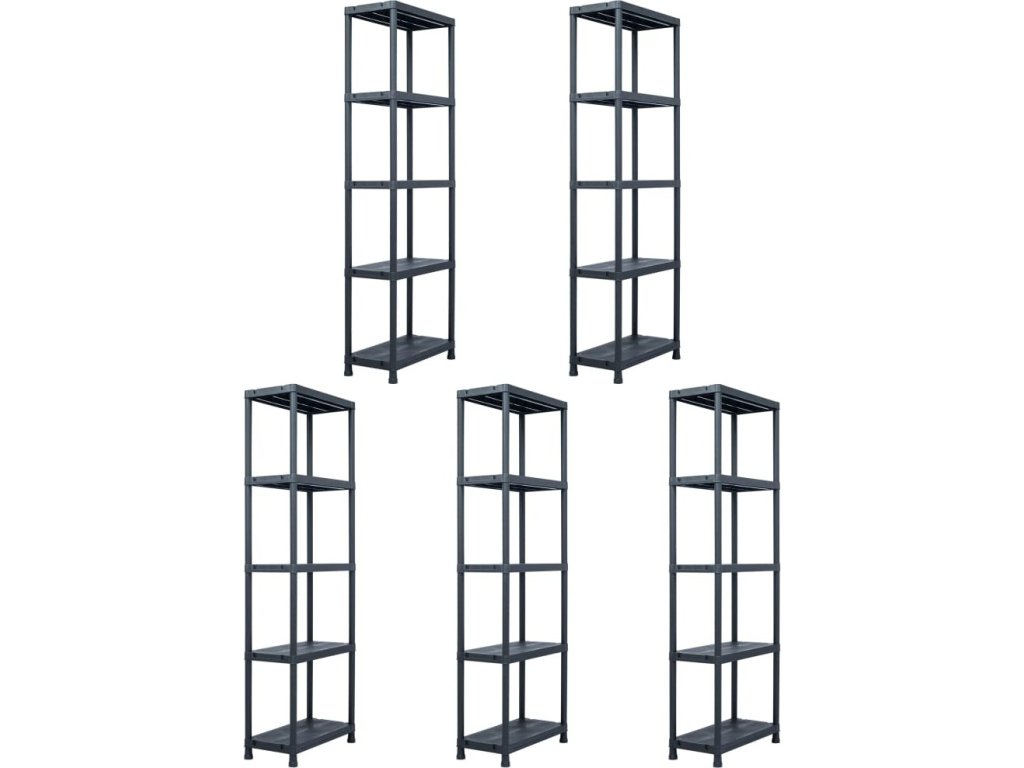Skladové regály 5 ks černé 125 kg 60 x 30 x 180 cm plastové [276258]